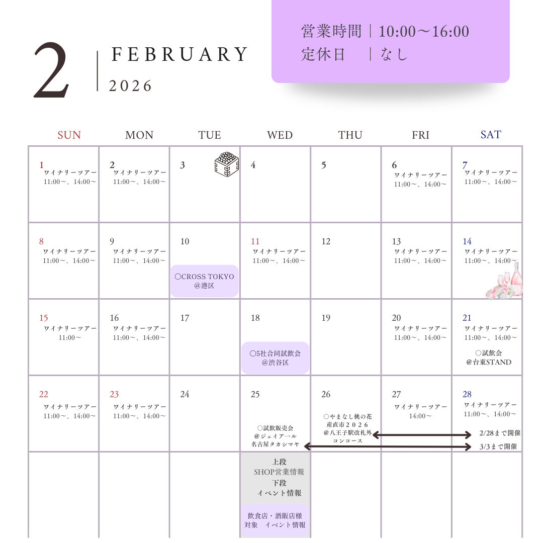 2026年2月 試飲会・イベント・SHOPカレンダー